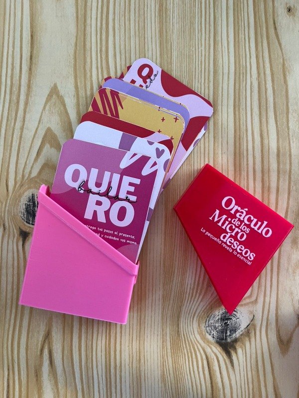 Pensado como un objeto de uso cotidiano, el Oráculo de los Microdeseos puede usarse para abrir el día, cerrar la noche o simplemente disfrutar de un momento en soledad o compartido, donde nos demos permiso para escucharnos suavemente desde adentro.